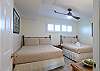 Bedrooms: The master bedroom features a king-sized bed and a private bathroom with a walk-in shower. The second bedroom is perfect for families or groups, offering two double beds that sleep four comfortably. Both bedrooms are equipped with ceiling fans and flat-screen TVs for added convenience.